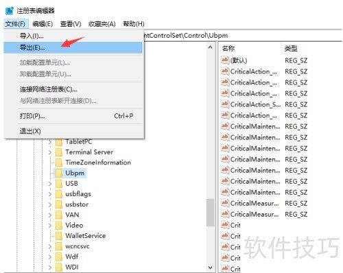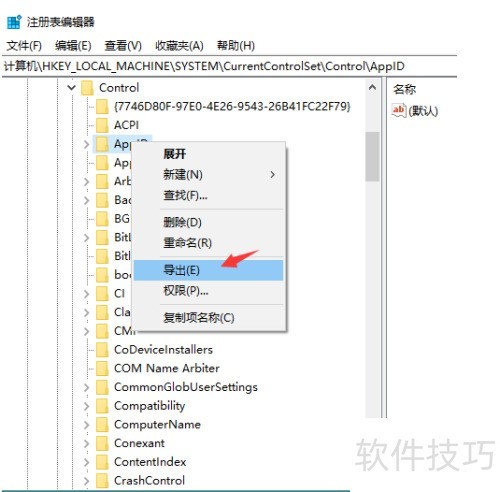 5、 若要备份注册表的部分内容,右键点击目标项,选择导出,设置保存路径后完成操作。
