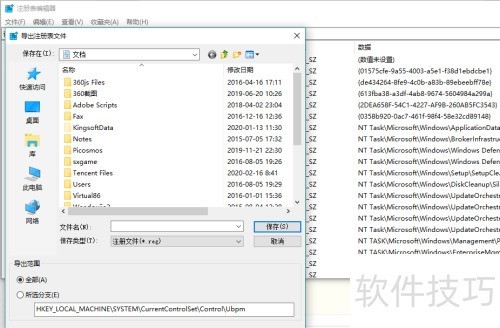 4、 设置备份注册表文件的保存位置时,记得将导出范围选择为全部。