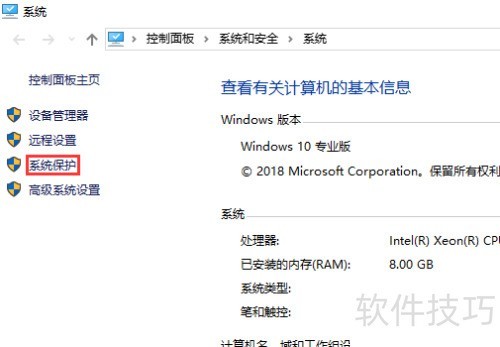 2、 在系统窗口左侧找到并点击系统保护。