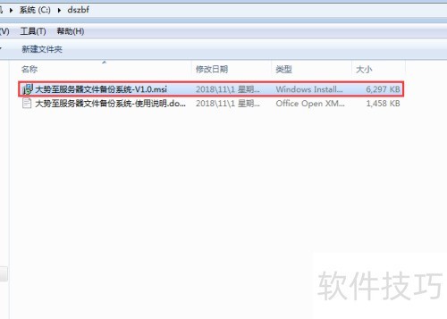 8、 有些单位会采用专用的服务器自动备份系统来备份服务器数据,同时还能对注册表进行专项备份。下面为大家介绍这种方法。请前往百度搜索大势至服务器文件备份系统并下载,解压后找到大势至服务器文件备份系统-V1.0.msi,双击安装即可。