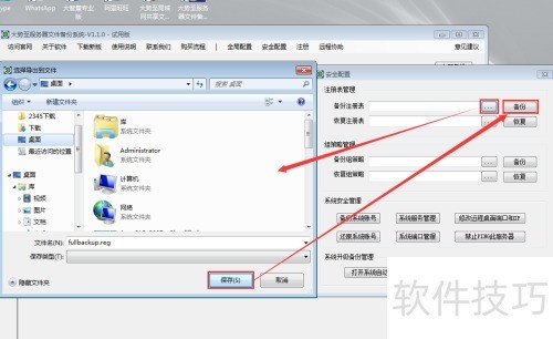 11、 在注册表管理中找到备份注册表,点击浏览(...),在弹出窗口选择保存位置后点击保存,再点击备份按钮。系统将开始备份注册表,直至完成整个过程。