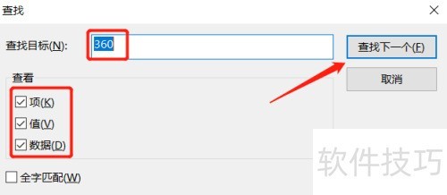 11、 在查找窗口输入要搜索的注册表或软件名称,然后点击查找下一个开始搜索。
