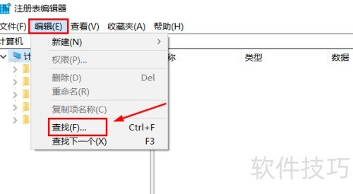 10、 如何查找注册表?若知晓位置,可直接在对应文件夹查找;若未知位置,点击编辑选项,于下拉列表中选择查找功能即可。