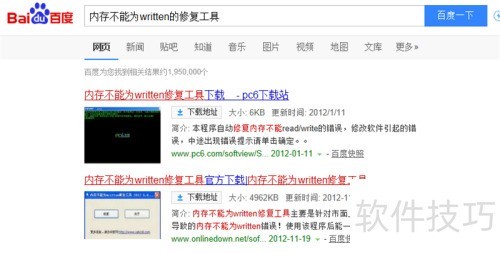 1、 在百度搜索内存无法读写修复工具,找到相关结果,下载并安装该软件。