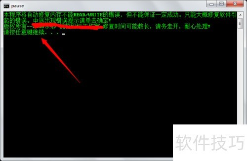 4、 此时会弹出一个对话框,所示,点击任意键后,软件即可开始运行。