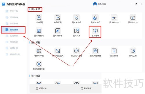 1、 首先,打开万能图片转换器,进入首页后,在左侧功能栏找到选项,接着点击下方的工具。