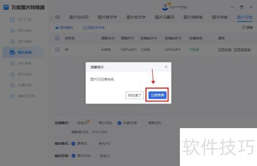 3、 第四步,页面会显示压缩完成的提示,照片从4.4MB压缩至1.3MB。点击,即可在电脑文件中找到压缩后的照片位置。