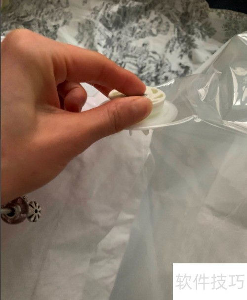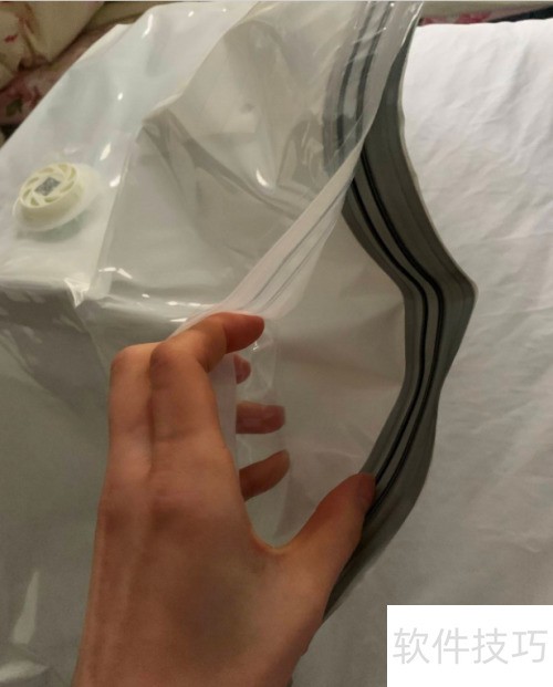 将被子叠好放入压缩袋,平整后封住划片,挤出多余空气,再用抽气泵抽尽剩余气体,最后插上塞子盖紧盖子,避免压缩袋漏气或重新膨胀。