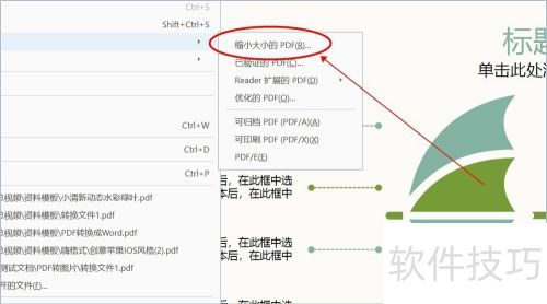 3、 除了其他方法,我们还能通过PDF编辑器实现PDF文件的压缩。以下将以Adobe Acrobat Pro DC为例,介绍如何减小PDF文件大小。首先,打开PDF编辑器并加载需要压缩的文件。随后,在左上角点击文件,从下拉菜单中选择另存为其他。接着,在另存为其他选项的子菜单里找到并选择缩小大小的PDF功能,按照提示操作即可完成压缩过程。