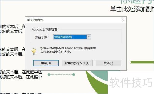 4、 在减小PDF大小窗口中,选择 Acrobat 版本兼容性,默认建议保留当前压缩。选好后点击下方确定完成压缩。不过,此方法压缩效果不太理想,文件缩小程度有限。