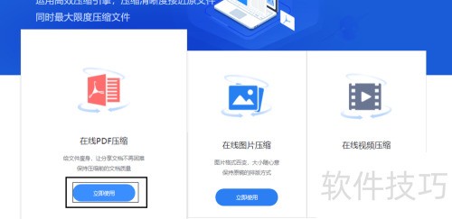 1、 在浏览器搜索PDF在线压缩,访问相关网站,找到首页中的在线PDF压缩入口,点击后进入压缩页面。