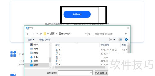 2、 在压缩页面中选择文件,挑选要压缩的PDF文件,每次最多可选四个进行压缩处理。