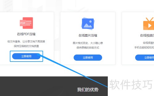 5、 在浏览器搜索在线pdf压缩,进入相关网站,打开后点击在线pdf压缩功能。