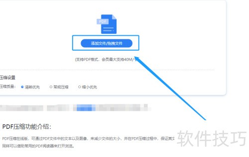6、 要压缩PDF文件,可点击或拖拽文件至操作界面中添加,然后进行压缩处理。