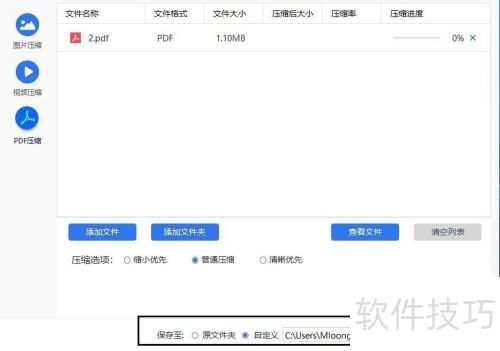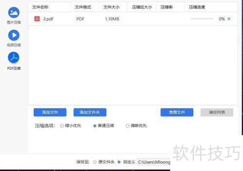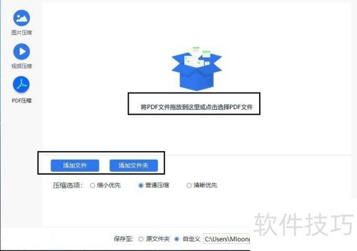 2、 在压缩页面中找到添加文件或文件夹选项,将待压缩的PDF文件添加至该页面。