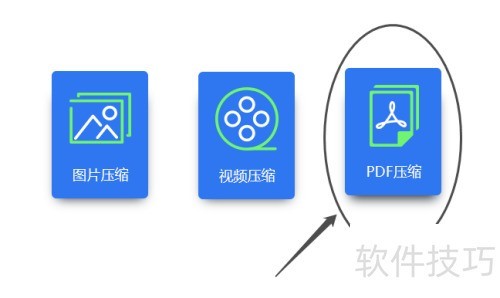 1、 打开压缩软件,界面显示三项功能,选择PDF压缩,即可进入操作页面。