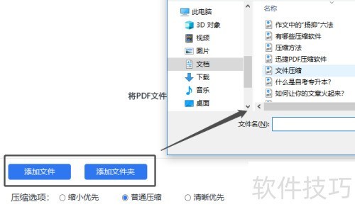 2、 要压缩PDF文件,点击添加文件或添加文件夹按钮选择文件,支持直接拖拽添加,还可一次性选取多个文件进行批量压缩操作。