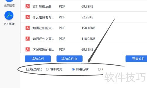 4、 添加文件夹按钮下方设有压缩选项,包括缩小优先、普通压缩和清晰优先。软件默认为普通压缩,用户可根据需求自行调整选择。
