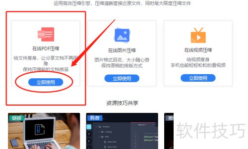 7、 搜索在线PDF压缩工具,进入相关网站,点击在线PDF压缩选项,开始进行下一步操作。