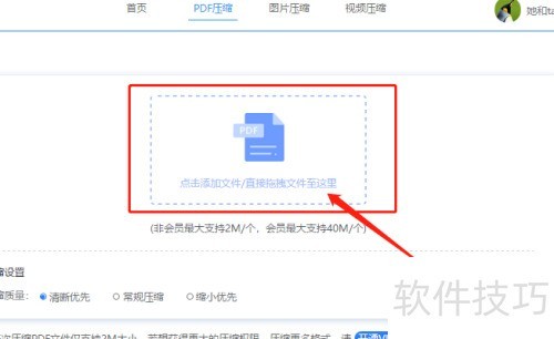 8、 选择要压缩的PDF文件添加,支持拖拽操作。