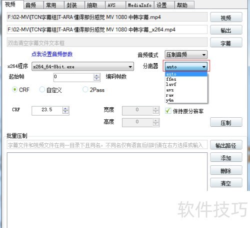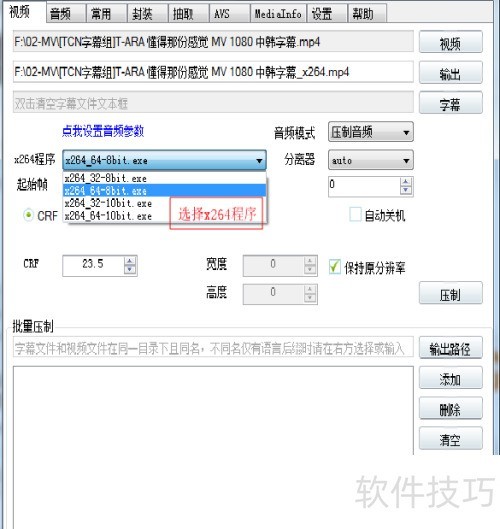 2、 选择x264程序时,32位系统推荐x264_32-8bit.exe,64位系统则选用x264_64-8bit.exe。