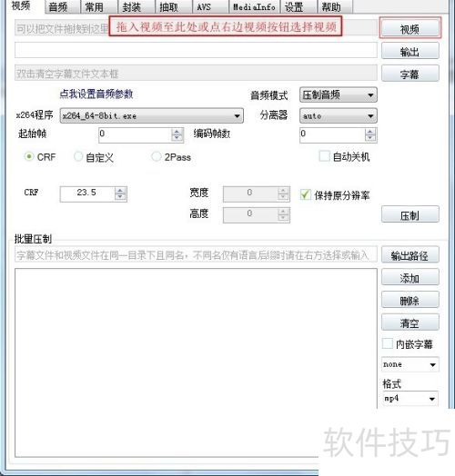 1、 将视频拖至此处,或点击右侧视频按钮进行选择。