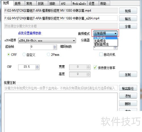 3、 选择音频模式时,若需压制音频则选音频压制,无需压制则选无音频流...