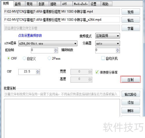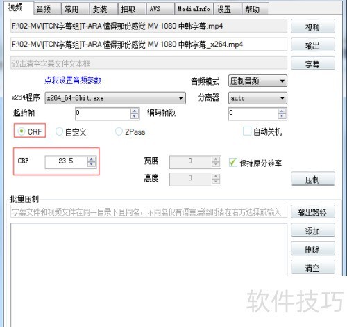 5、 选择压缩方式:若不确定设置,建议选用CRF;若采用两遍码率,则推荐1000Kbps。