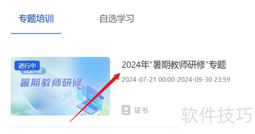 2、 进入个人中心培训页,点击2024暑期教师研修专题。