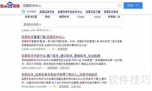1、 先打开百度首页,搜索百度软件中心,这里软件资源较为齐全,所示。