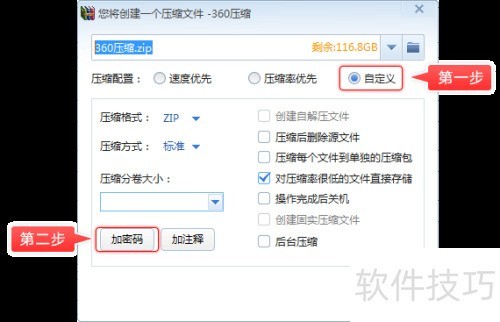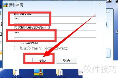 2、 点击添加密码标签,输入密码完成设置。若要删除密码,可输入空字符串覆盖原密码,或关闭360压缩包后重新启动即可。