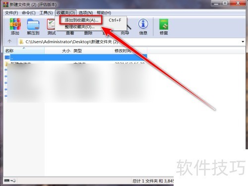在WinRAR窗口查找所需文件夹较麻烦,若将其收藏到WinRAR中,日后便能快速定位该文件夹。