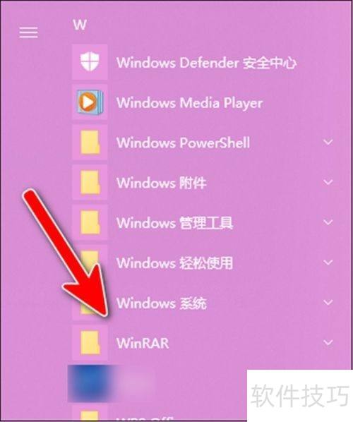 2、 在以W开头的列表里,找到并打开WinRAR。