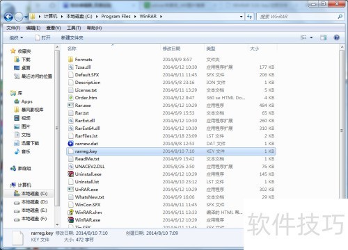 3、 将文件重命名为rarreg.key,随后复制到WinRAR安装目录。如果安装在C盘,默认路径为C:Program FilesWinRAR。根据个人安装位置,在对应磁盘中查找。找到后,直接打开即可完成设置。