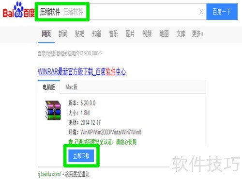 1、 请在百度搜索压缩软件并下载安装,所示。