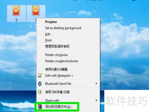 3、 选中图片,右键点击添加到压缩文件,所示。