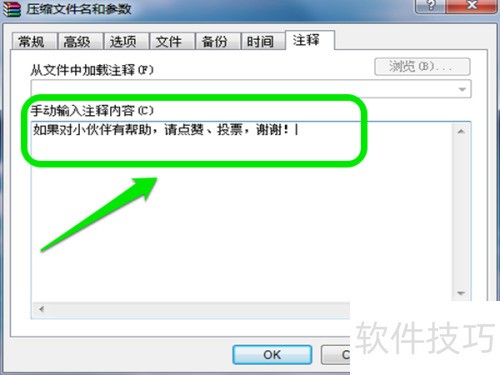 5、 最后为压缩包添加注释,可用于宣传或备忘等用途。