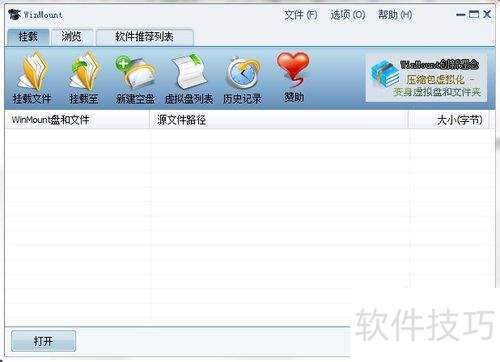 1、 下载并安装WinMount软件,这是一款国产免费工具。安装完成后打开,界面所示(当前版本为3.4.1)。