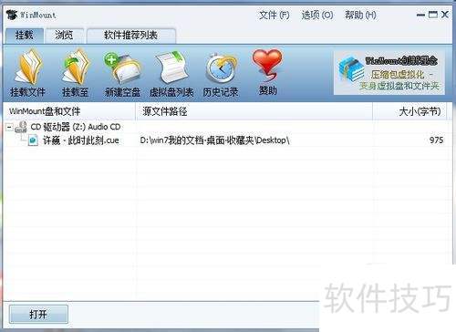 2、 点击挂载文件,在弹出对话框中定位FLAC、APE音频的CUE引导文件并确认。文件将虚拟...