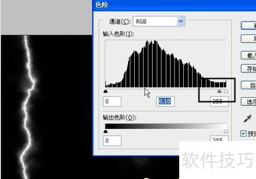 2、 新建图层,设前景背景色为默认。选用渐变工具,拉出一条渐变线,即可制作闪电效果。