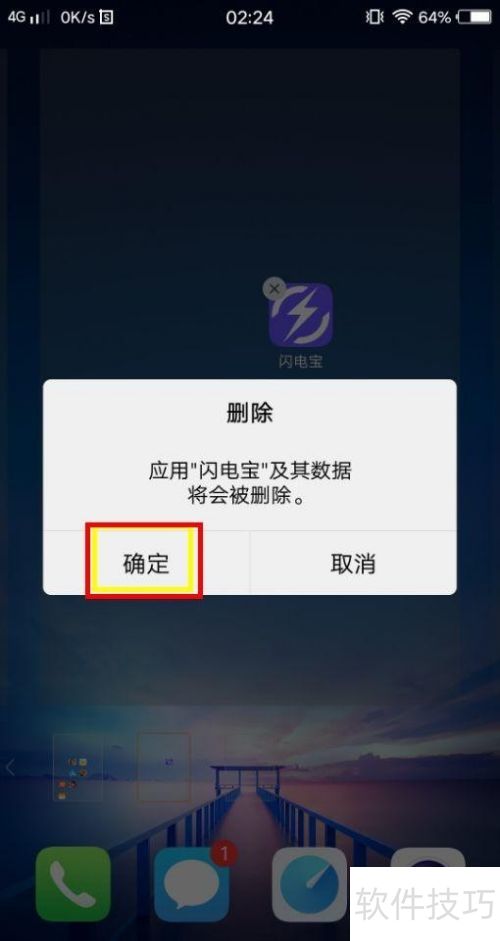 3、 点击闪电宝图标上的X,卸载已安装的APP。在弹出的删除窗口中,确认操作以完成卸载。