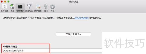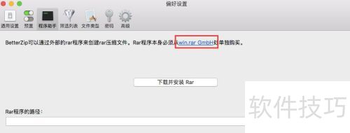 1、 打开Mac的BetterZip工具,依次点击--,可点击下载并安装Rar,也可前往RAR官网下载安装包完成安装。