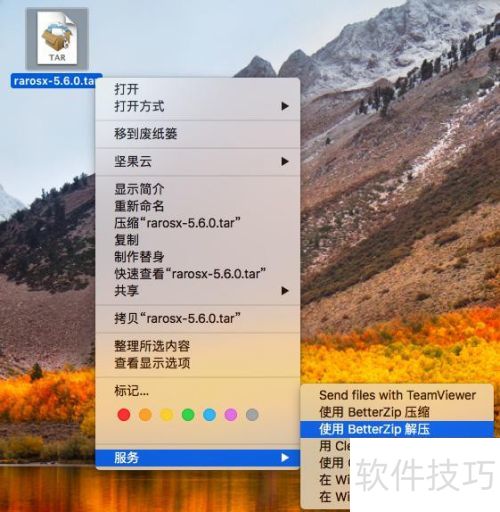 2、 下载完成后,右键点击选择服务下的使用BetterZip解压选项。
