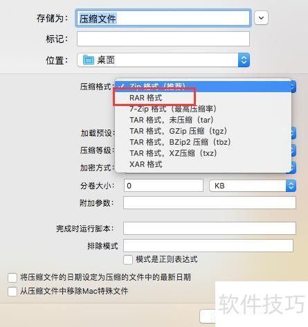 4、 添加Rar程序路径成功后,退出BetterZip,再用它压缩文件时,就能在压缩格式中看到并选择RAR格式了。