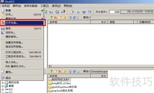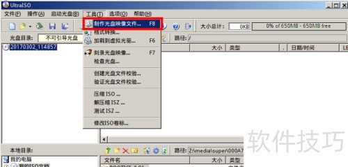 5、 以UltraISO为例,点击文件下的打开光盘,可加载光盘内容;选择制作光盘映像文件即可将光盘内容保存为ISO格式。