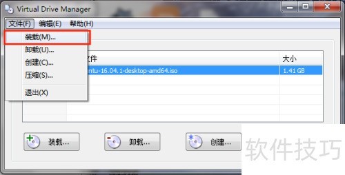 6、 之后,利用VIRTUAL_DRIVE等虚拟光驱软件,依次点击文件、装载,选中已制作的光盘ISO镜像文件,便可如同实体光驱一般正常使用。