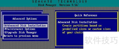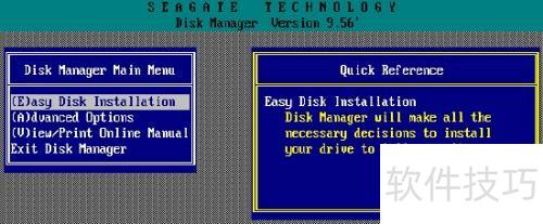 1、 要启动DM,只需在DM目录下输入dm命令,随即出现一个提示窗口,按下任意键即可进入主界面。DM具备自动分区功能,无需人工操作,软件可自行完成分区。只需在主菜单中选择(E)asy Disk Installation选项,即可轻松实现硬盘分区。