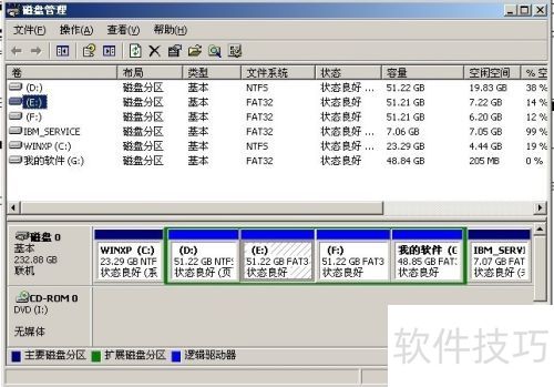 1、 假如要为D盘扩容50MB,这部分空间将从E盘分配。