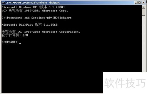 9、 在弹出的窗口里依次输入Diskpart命令,用于调用DOS磁盘管理工具。