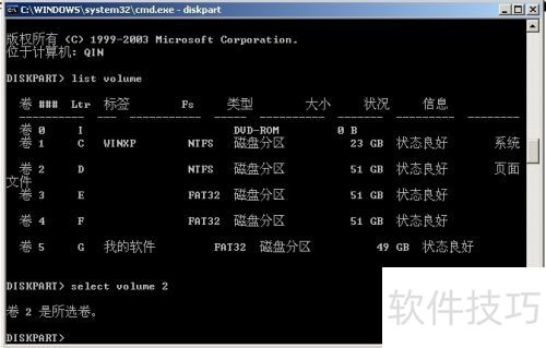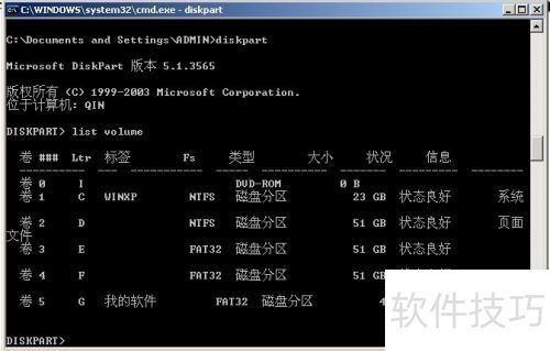 10、 输入List Volume可显示系统中所有磁盘的详细信息。